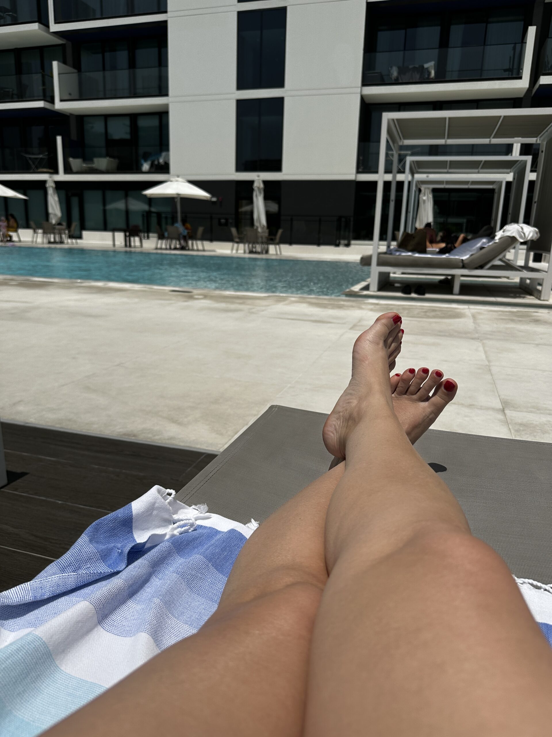 Hommikuti kujunes meil välja mõnus rutiin: pärast hommikusööki suundusime maksimaalselt tunniks Keily maja basseini äärde päevitama. Nii äge on see, et peaaegu igal kortermajal on oma hoov koos basseini ja väikese puhkealaga. Lisaks on majades ka jõusaal ning eraldi, nii naistele kui meestele. Lihtsalt nii inspireeriv elukeskkond.